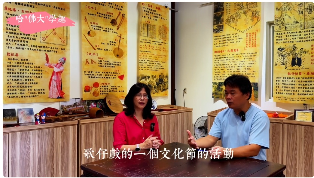 2025年第三十站特別邀訪到宜蘭員山結頭份歌仔戲班陳聰文團長及顏式敏老師,聊聊本地歌仔戲的由來,認識本地歌仔戲的主要角色、樂器及演出形式,目前結頭份戲班有培養自己的樂師,以豐富現場的表演。顏老師除介紹本地歌仔戲的四大戲,也分享平時練習的基本功,仔細介紹生旦丑的腳步手路,以及班員結合社區藍染學習,自製表演服飾,示範安童買菜歌及桃花過渡曲調唱四季。